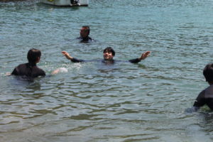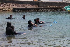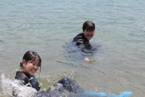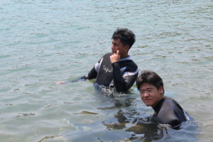 海に入るのが初めてで緊張している学生もいたりと・・・