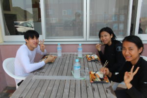 暑い日が続いていましたので、海での授業を喜ぶ学生もいたり